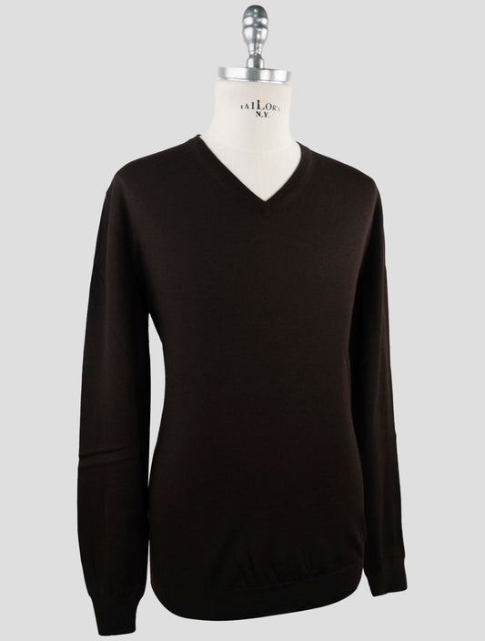 سويت شيرت كيتون بني من كشمير وحرير على شكل حرف V