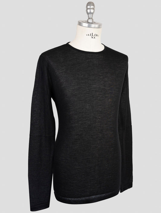 Kiton KNT Premium Cashmere Silk Crewneck Sweater Black Handmade