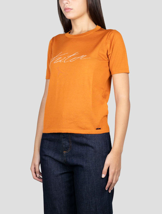 Kiton Orange Cashmere Silk T-Shirt Women's Handmade Italian