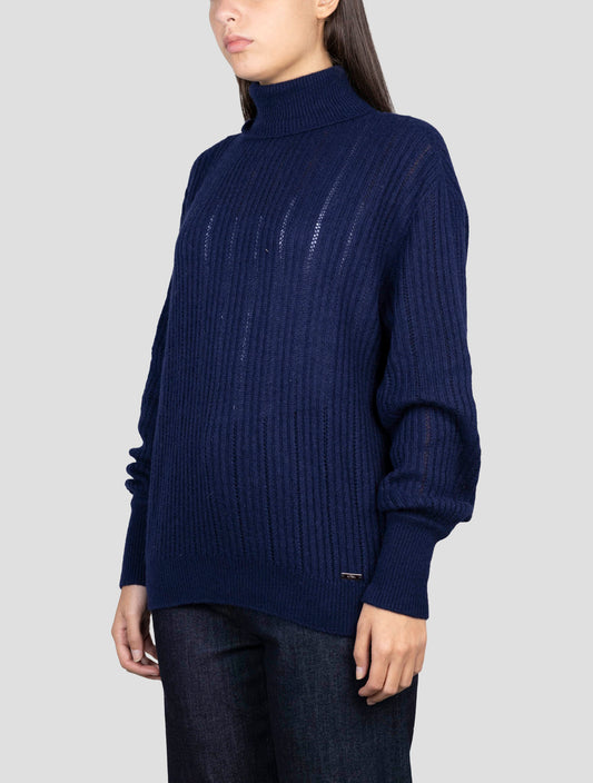 Kiton Blue Cashmere Silk Turtleneck Sweater Women Italian Handmade