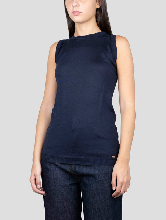 Kiton Women's Cashmere Silk Crewneck Sweater Blue Handmade Italian