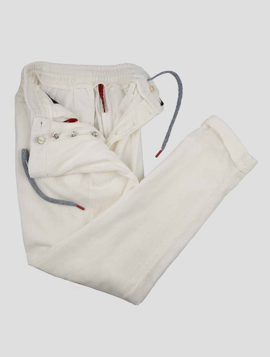 Kiton White Cotton Velvet Pants - Handmade Italian Luxury Trousers