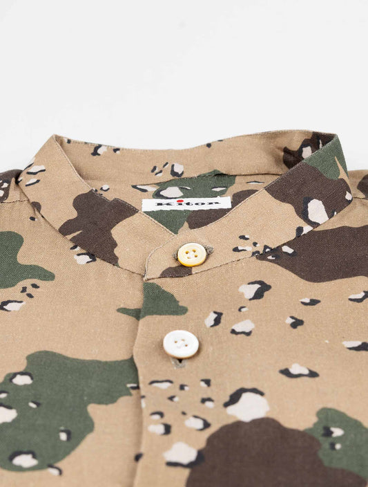 Kiton Multicolor Linen Shirt - Italian Handmade Camouflage Pattern