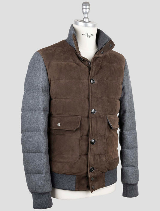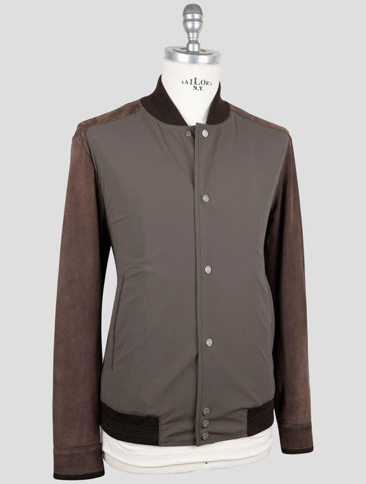 Kiton Premium Wool Leather Suede Coat Brown Italian Handmade