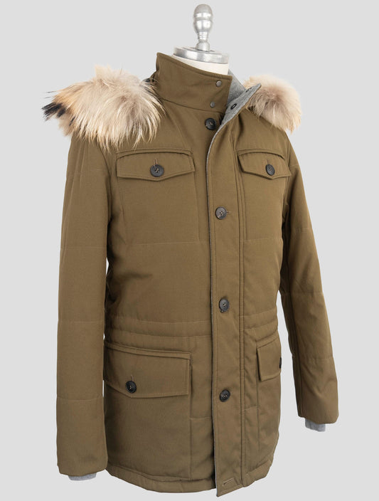 Kiton Green Cotton Polyester Coat - Italian Handmade Tailored
