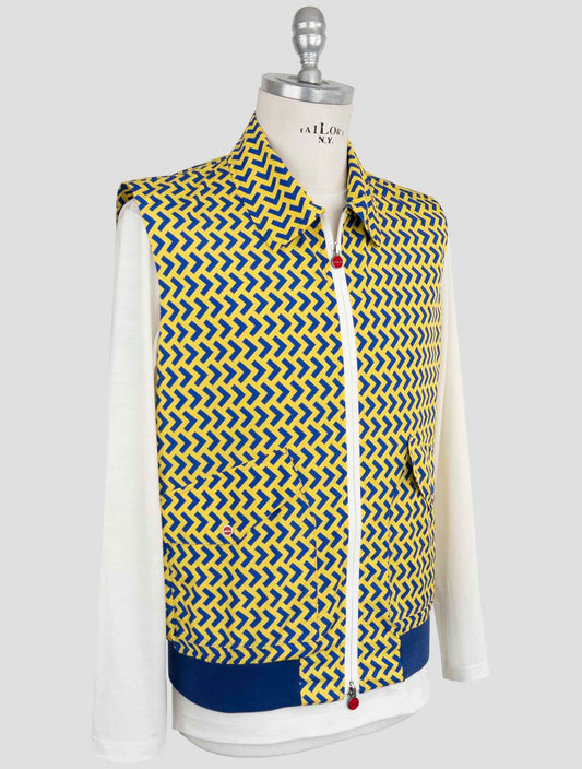Kiton Premium Yellow Blue Polyester Coat Gilet - Italian Luxury