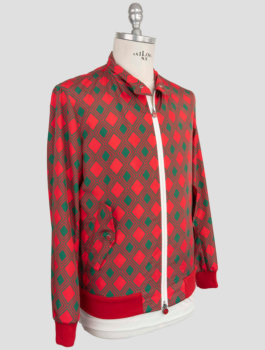 Kiton Premium Polyester Coat Red Green Italian Luxury Menswear