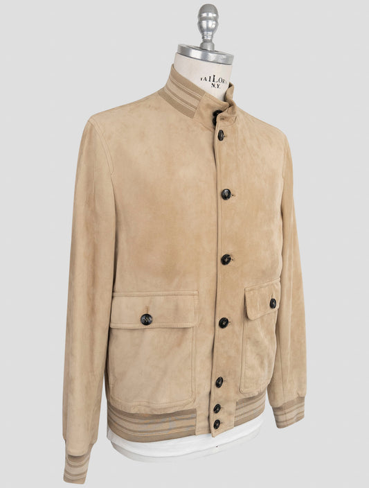 Kiton Premium Beige Suede Leather Coat - Italian Handmade Menswear