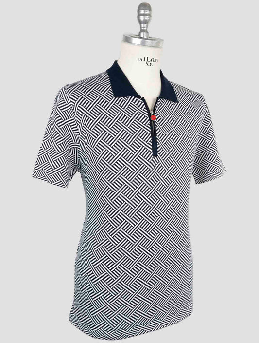 بولو كيتون نصف سحاب من الحرير والقطن الأزرق والأبيض