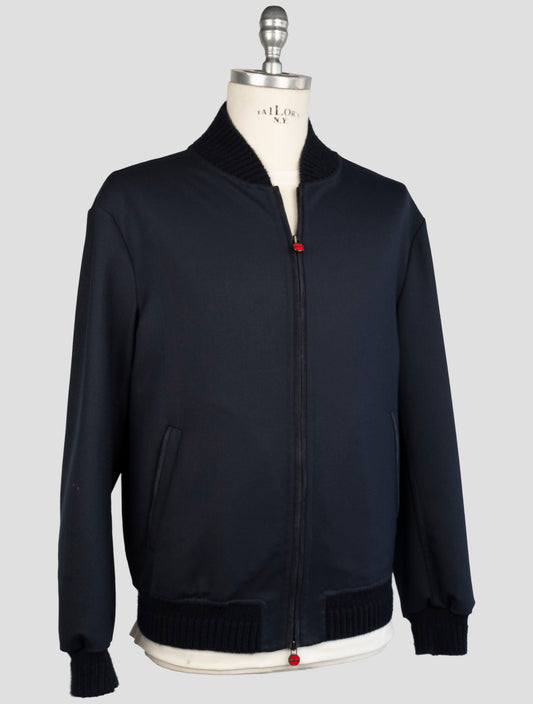 Kiton Premium Blue Wool Coat with Leather Trim - Italian Made