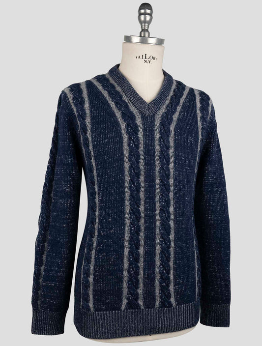 Kiton Blue Gray Cashmere Sweater V-Neck