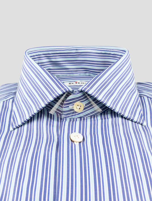 Kiton Blue Cotton Dress Shirt - Handmade Italian Regular Fit