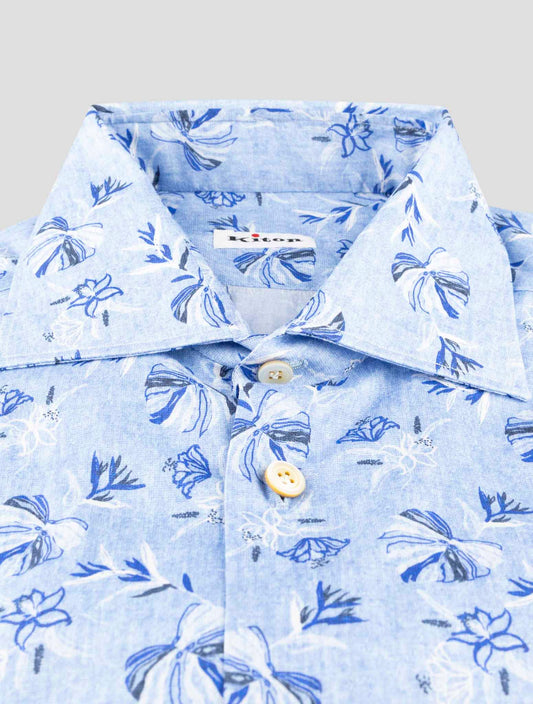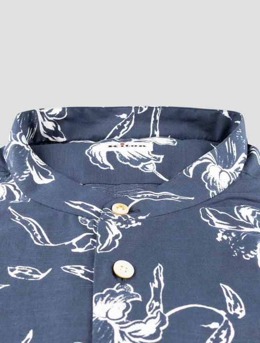 Kiton Blue Cotton Shirt - Handmade Italian Floral Pattern Regular Fit