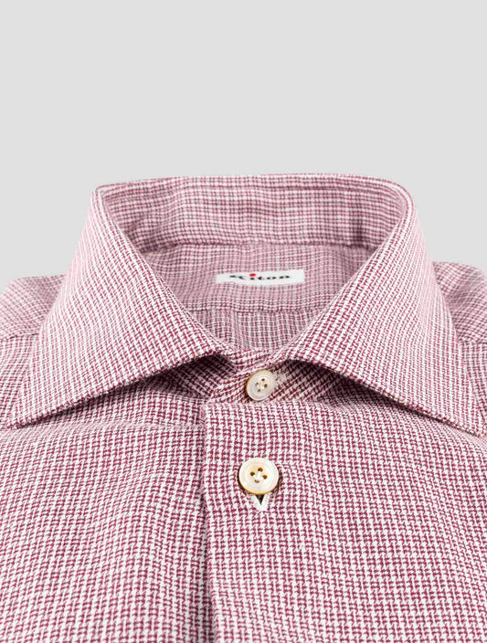 Kiton White Burgundy Cotton Shirt - Handmade Italian Geometric
