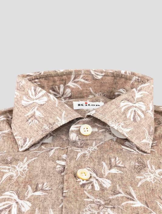Kiton Brown White Cotton Shirt - Handmade Geometric Pattern
