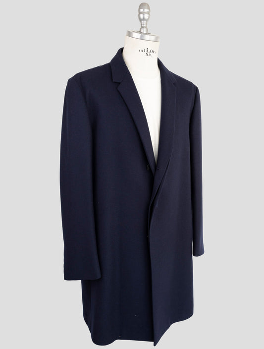 Kiton KNT Blue Water-Resistant Polyester Overcoat Handmade Italy