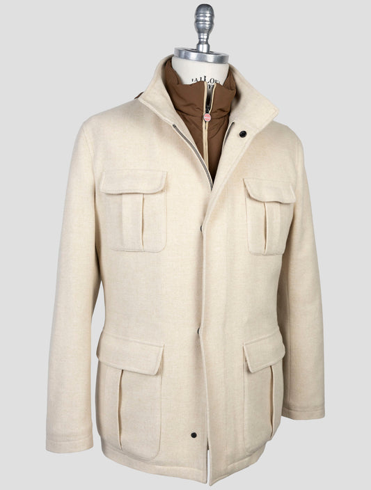 Kiton White Cotton Cashmere Full Zip Sweater - Handmade Italy