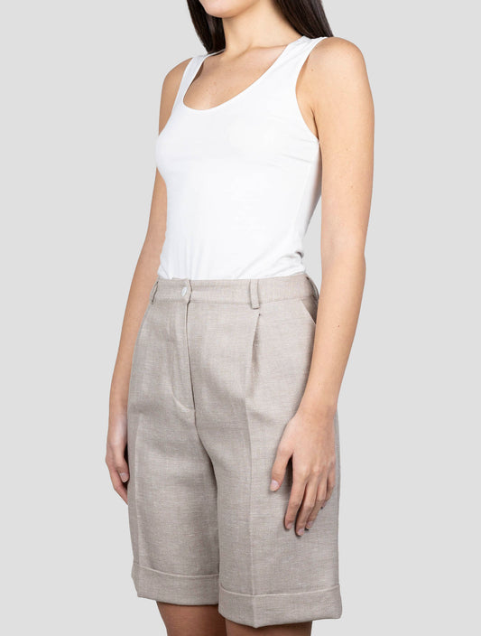 Kiton Beige Silk Linen Cotton Short Pants - Handmade Italian