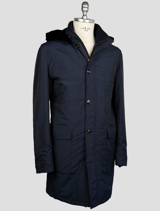 معطف كيتون الأزرق من الصوف مع فرو الويسل