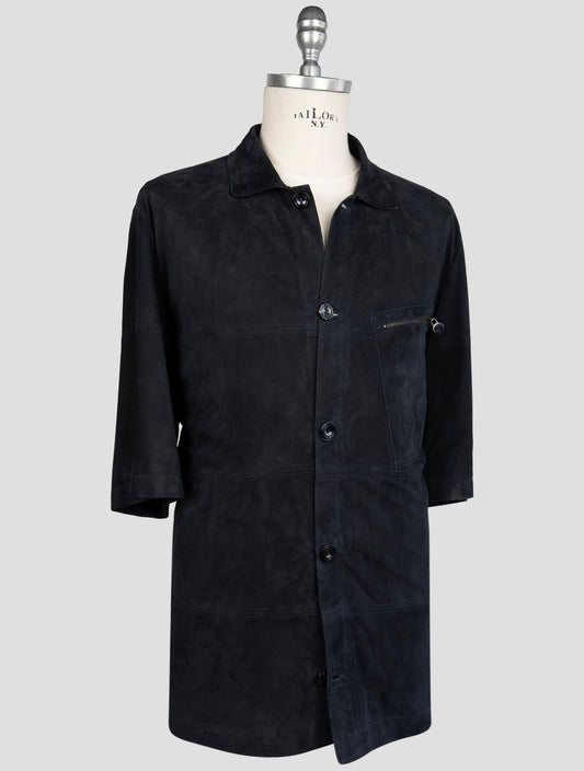 قميص كيتون أزرق من جلد السويد بأكمام قصيرة