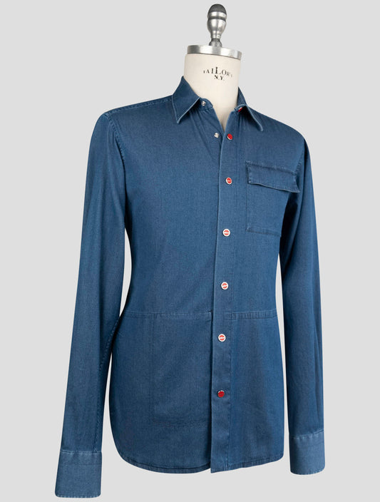 قميص كيتون أزرق من صوف العذراء والحرير والكتان