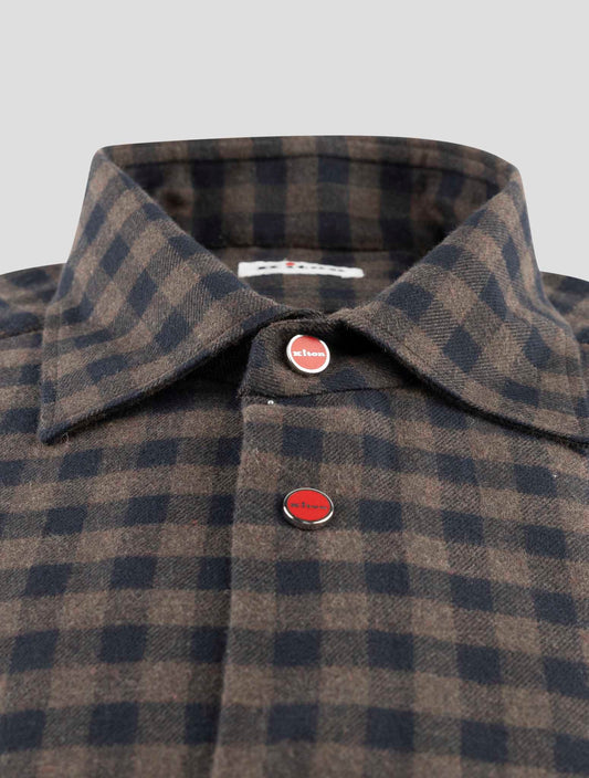 Kiton Premium Brown Blue Cotton Plaid Shirt - Italian Handmade
