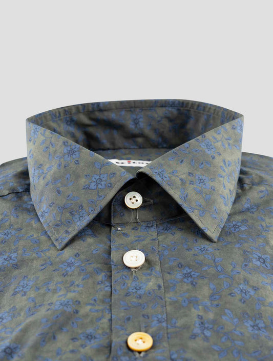 Kiton Premium Cotton Shirt Blue Floral Italian Handmade