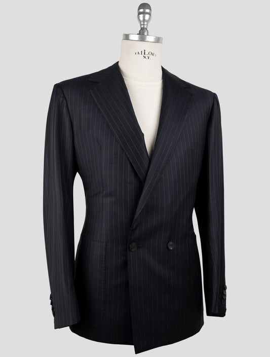 Kiton KNT Handmade Virgin Wool Double Breasted Suit Dark Blue