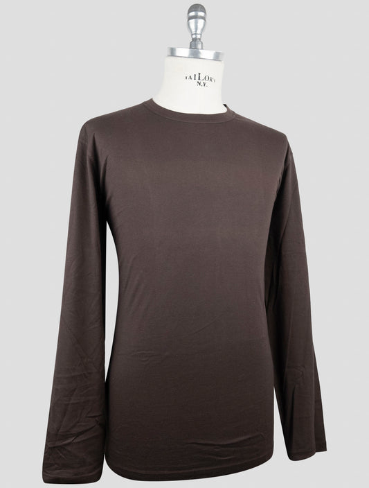 Kiton Brown Cotton Cashmere Long Sleeve T-Shirt | Handmade Italy