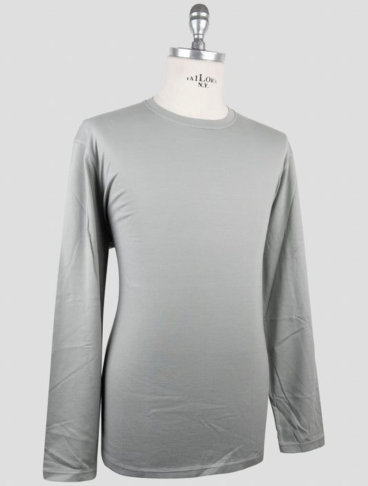Kiton Gray Cotton Cashmere Long Sleeve T-Shirt - Handmade Italian
