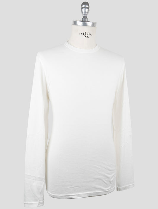 Kiton White Cotton Long Sleeve T-Shirt | Handmade Italian Luxury