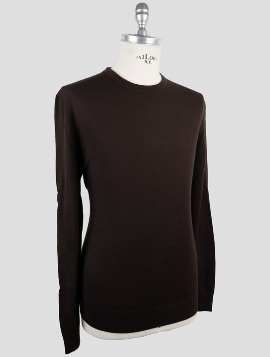 Kiton Brown Wool Crewneck Sweater - Diamante Blu Italian Handmade