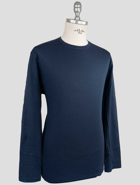 Kiton Blue Cotton Cashmere Long Sleeve T-Shirt - Handmade Italy
