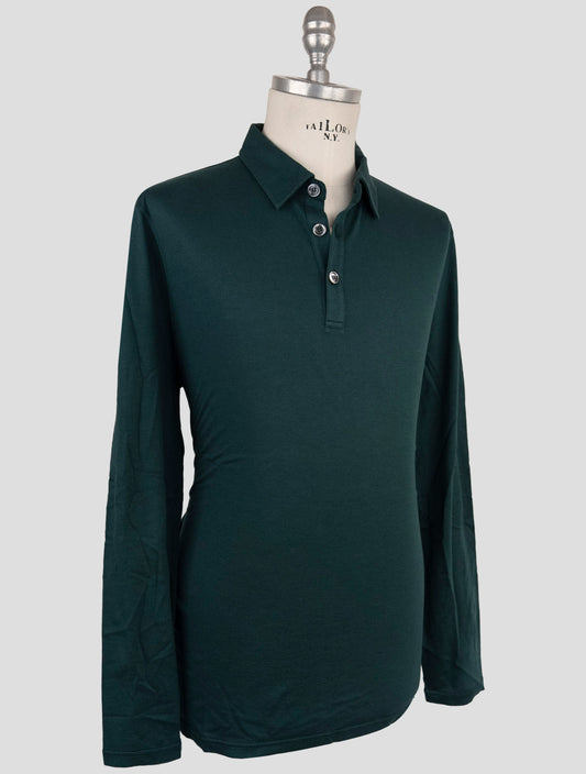 Kiton Green Cotton Cashmere Polo Sweater - Handmade Italian Knitwear