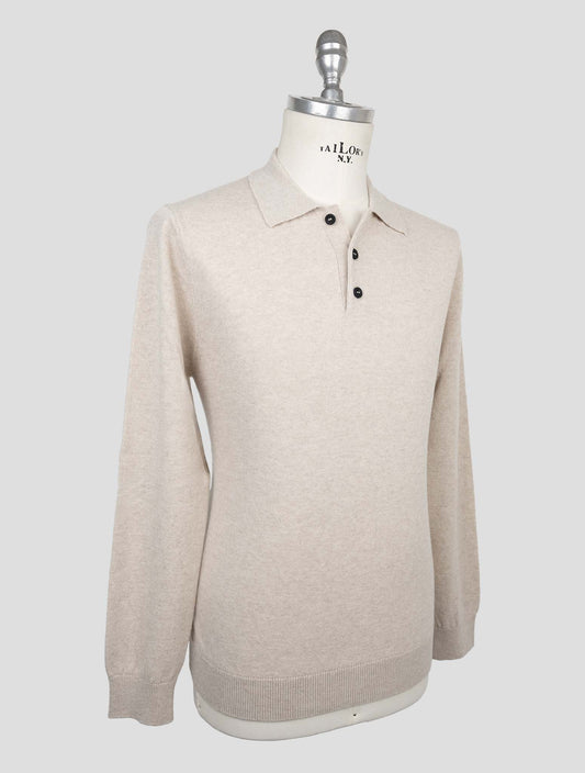 Kiton KNT Virgin Wool Polo Sweater Beige - Handmade Italian