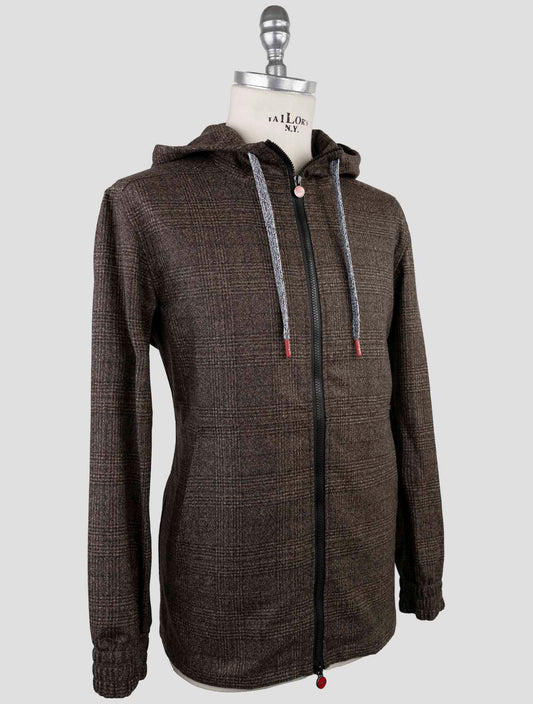 Kiton Virgin Wool Full Zip Cardigan - Brown Plaid Check Pattern