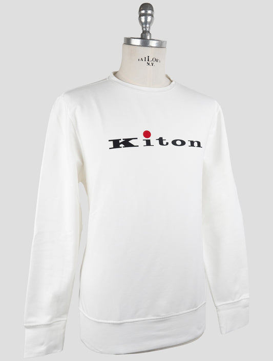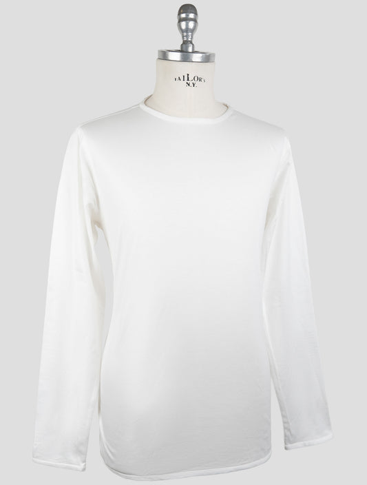 Kiton Premium White Cotton Crewneck Sweater - Made in Italy