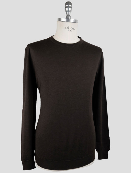 Kiton Premium Brown Wool Crewneck Sweater - Made in Italy