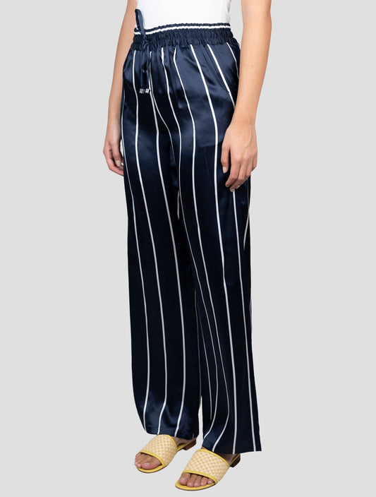 Kiton Women's Striped Silk Pants - Blue White Italian Luxury