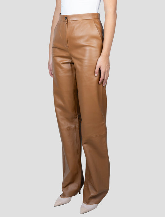 Kiton Brown Leather Pants Women's - Italian Handmade Premium