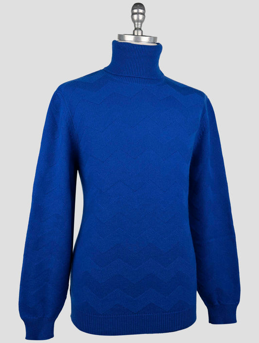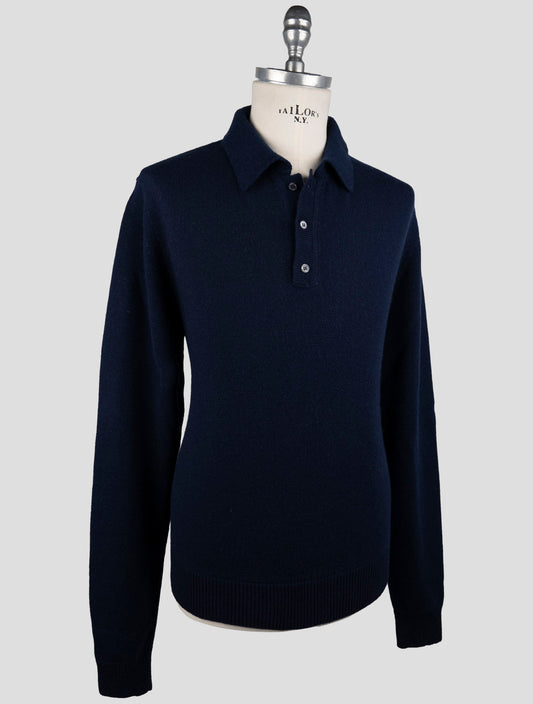 Kiton Wool Cashmere Polo Sweater Blue Beige Made in Italy