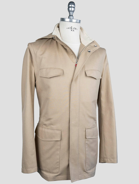 Kiton Men's Beige Cotton Coat - Italian Designer Outerwear