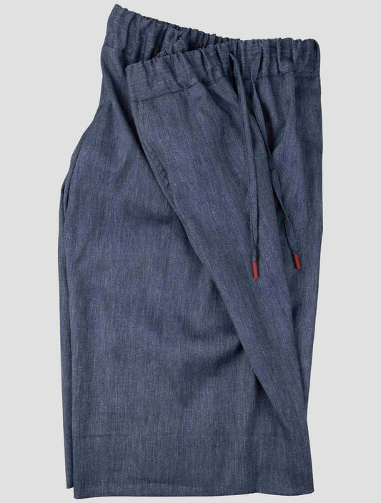 Kiton Premium Blue Linen Pants - Italian Handmade Summer Trousers