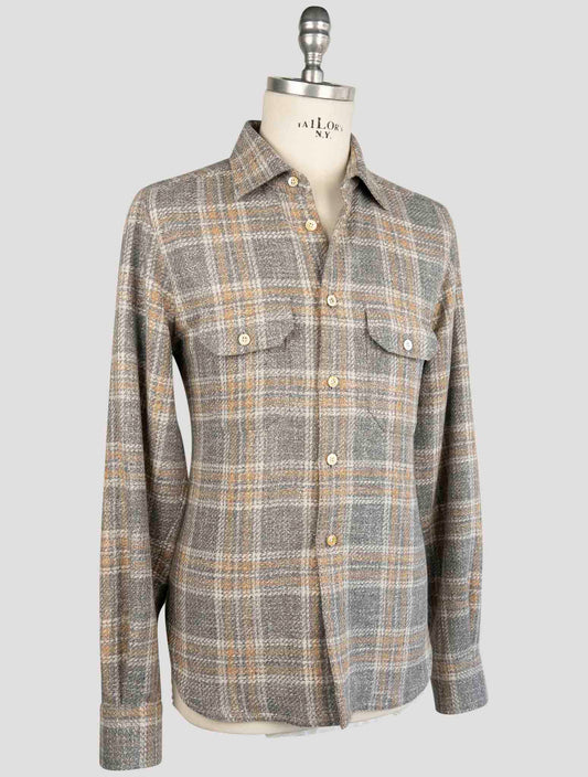 Kiton Multicolor Virgin Wool Silk Cotton Plaid Shirt - Italian