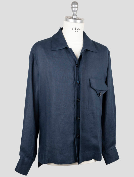 Kiton Premium Blue Linen Shirt - Italian Handmade Men's Summer