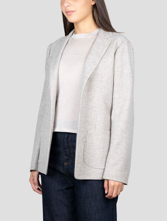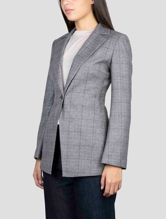 Kiton Luxury Virgin Wool Cashmere Blazer Women's Gray Plaid Handmade