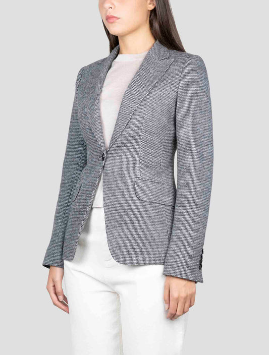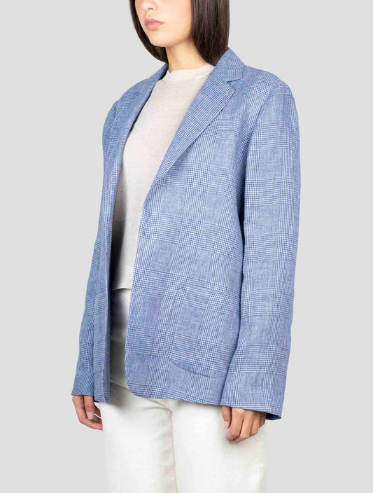 Kiton Blue Linen Blazer Women's Pied de Poule Handmade Italian