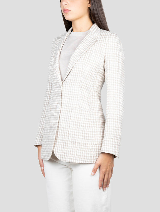 Kiton Handmade Beige Linen Cashmere Wool Blazer Pied de Poule