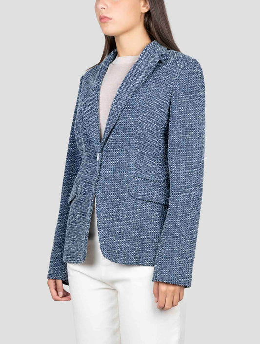 Kiton Blue Cotton Blazer Women's Handmade Italian Tailored