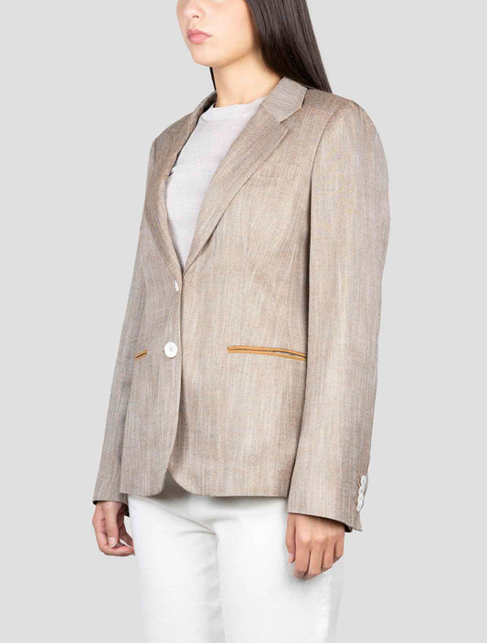 Kiton Handmade Beige Linen Alpaca Cotton Women's Blazer Italian